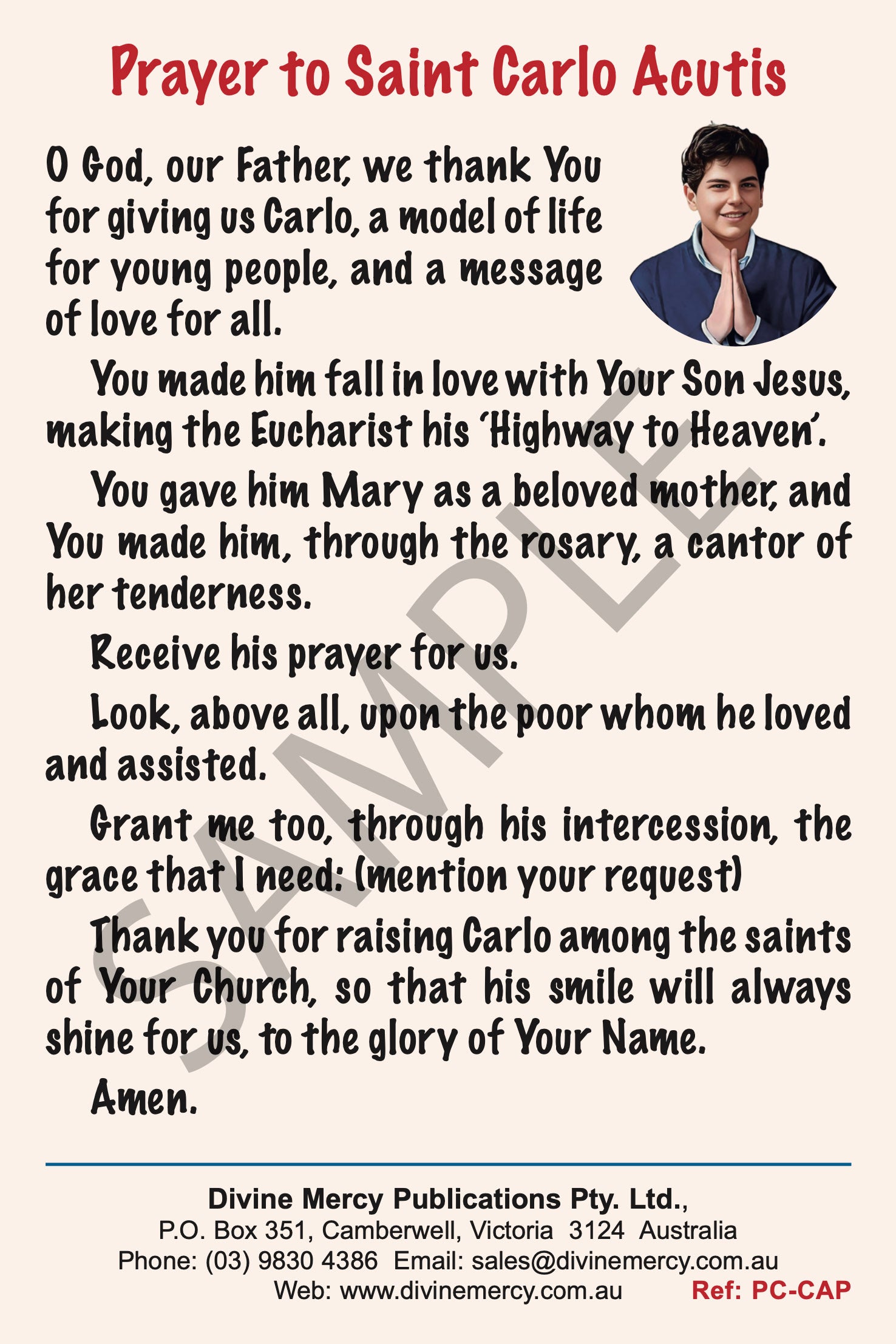 Plastic Card: 3 O'Clock Prayer and Divine Mercy Chaplet