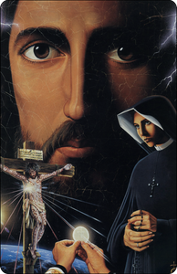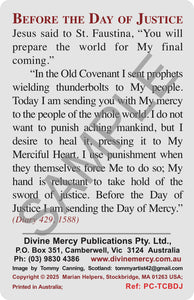 Prayer card with image by artist Tommy Canning titled 'Before the Day of Justice' with a quote from the Diary of St Faustina. (Ref 429. 1588)