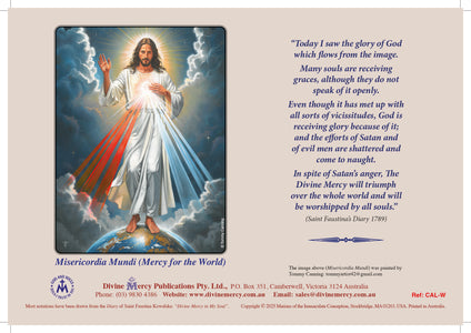 There are several popular images painted by Scottish artist Tommy Canning including the amazing new painting on the back called Misericordia Mundi (Mercy for the World).